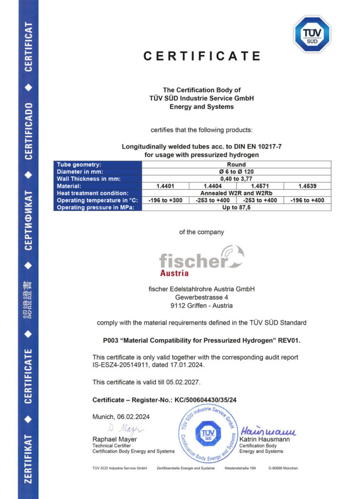 Für den Einsatz im Wasserstoffbereich dürfen nur Rohre verwendet werden, die eine spezielle Prüfung durchlaufen haben und mit einer H2-Ready-Kennzeichnung versehen sind.